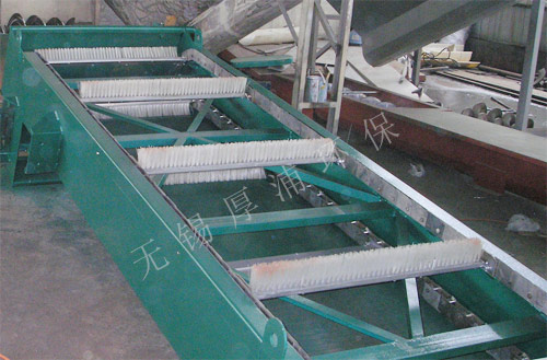 WBF转刷网蓖(bì)式格(gé)栅除污机(jī)主要由驱动装置、机(jī)架、主轴、栅(shān)网、托渣板、固定板刷、回转刷及牵引链组(zǔ)成。在电机驱(qū)动下,通过(guò)减速机减速后,带动链轮与(yǔ)链条运动,固定在回(huí)转链条上板刷(shuā)沿栅网网面由下而上(shàng)移动,清扫网面并带走污(wū)物,污物运送至顶部时,大部分(fèn)靠重力(lì)自行(háng)落至排渣(zhā)都,少量附(fù)着在固定板刷上的污物被转动的回转刷清除(chú)掉,完成除污过程(chéng),液体则通过栅网的间隙流(liú)过,整个工作过程连续进行。